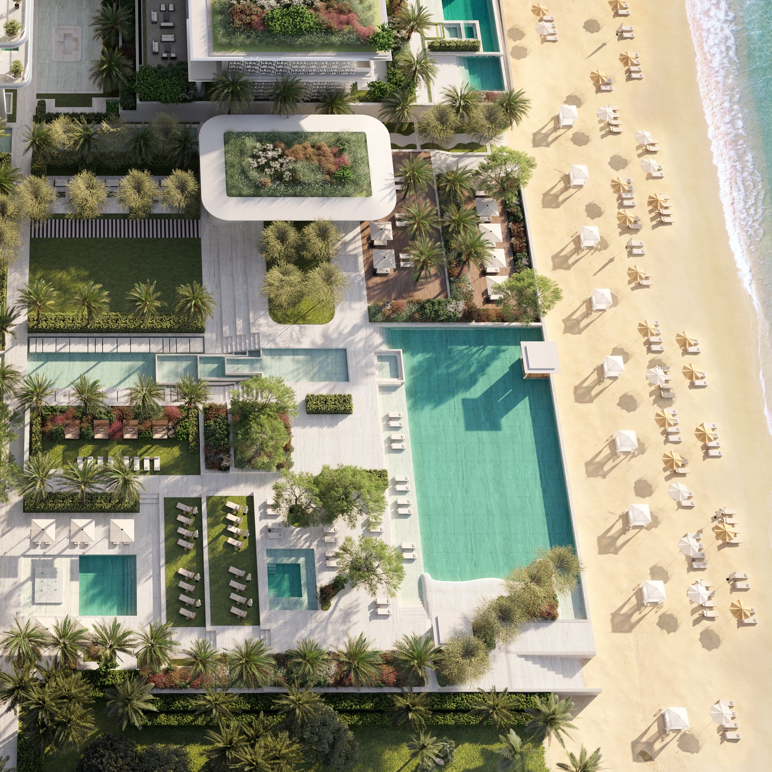 Gelegen auf einem 29.000 Quadratmeter großen Strandgrundstück an der Spitze der Palmenkrümmung, genießt ORLA eine privilegierte Lage und ungehinderte 270-Grad-Blicke von der beeindruckenden Skyline Dubais bis zu den türkisfarbenen Gewässern des Arabischen Golfs, die bis zum Horizont reichen.